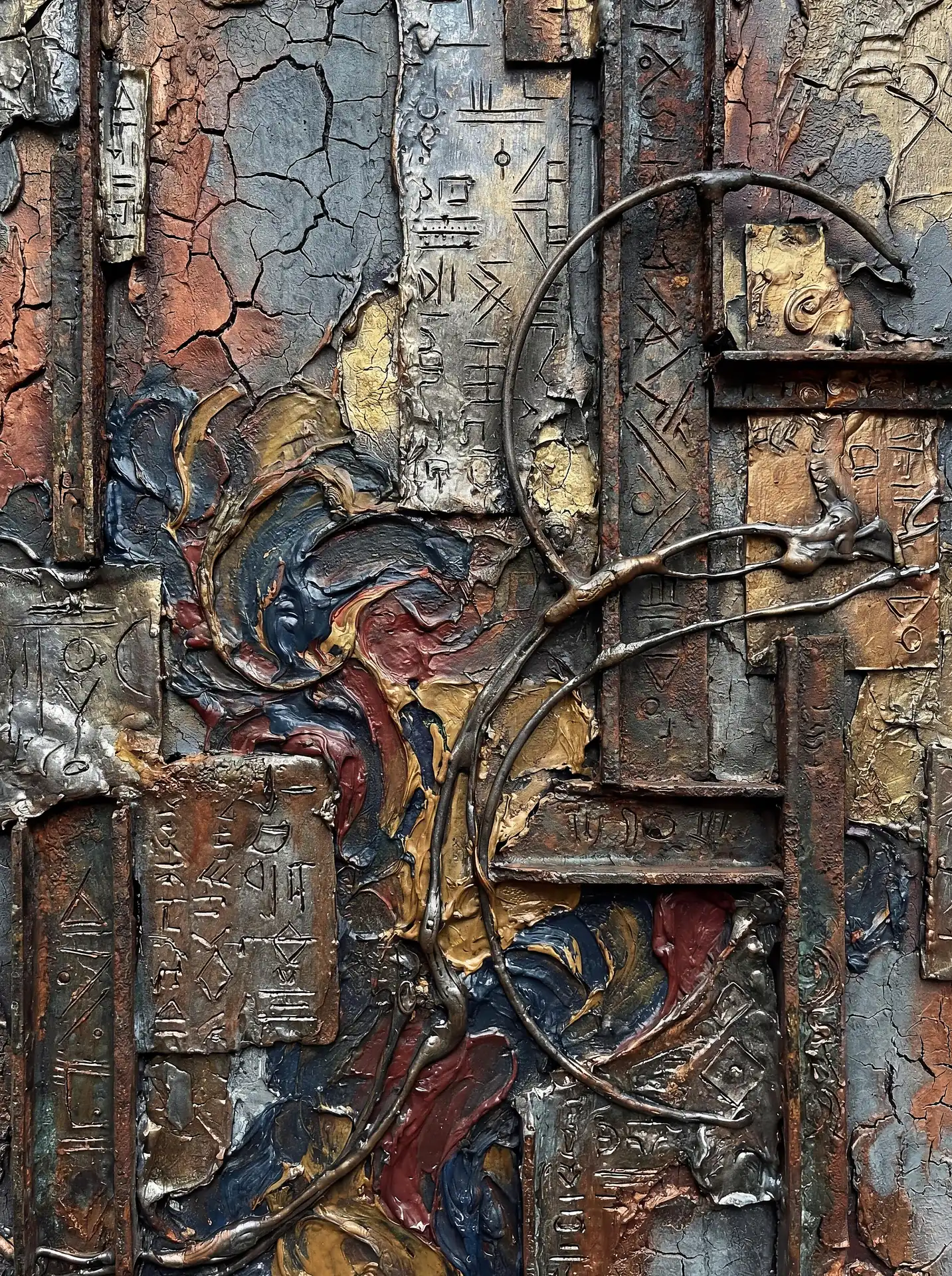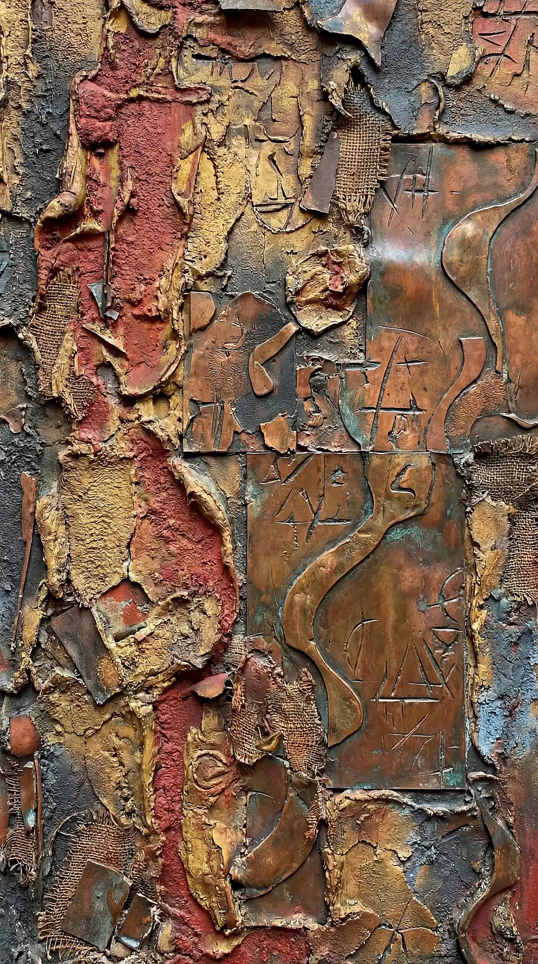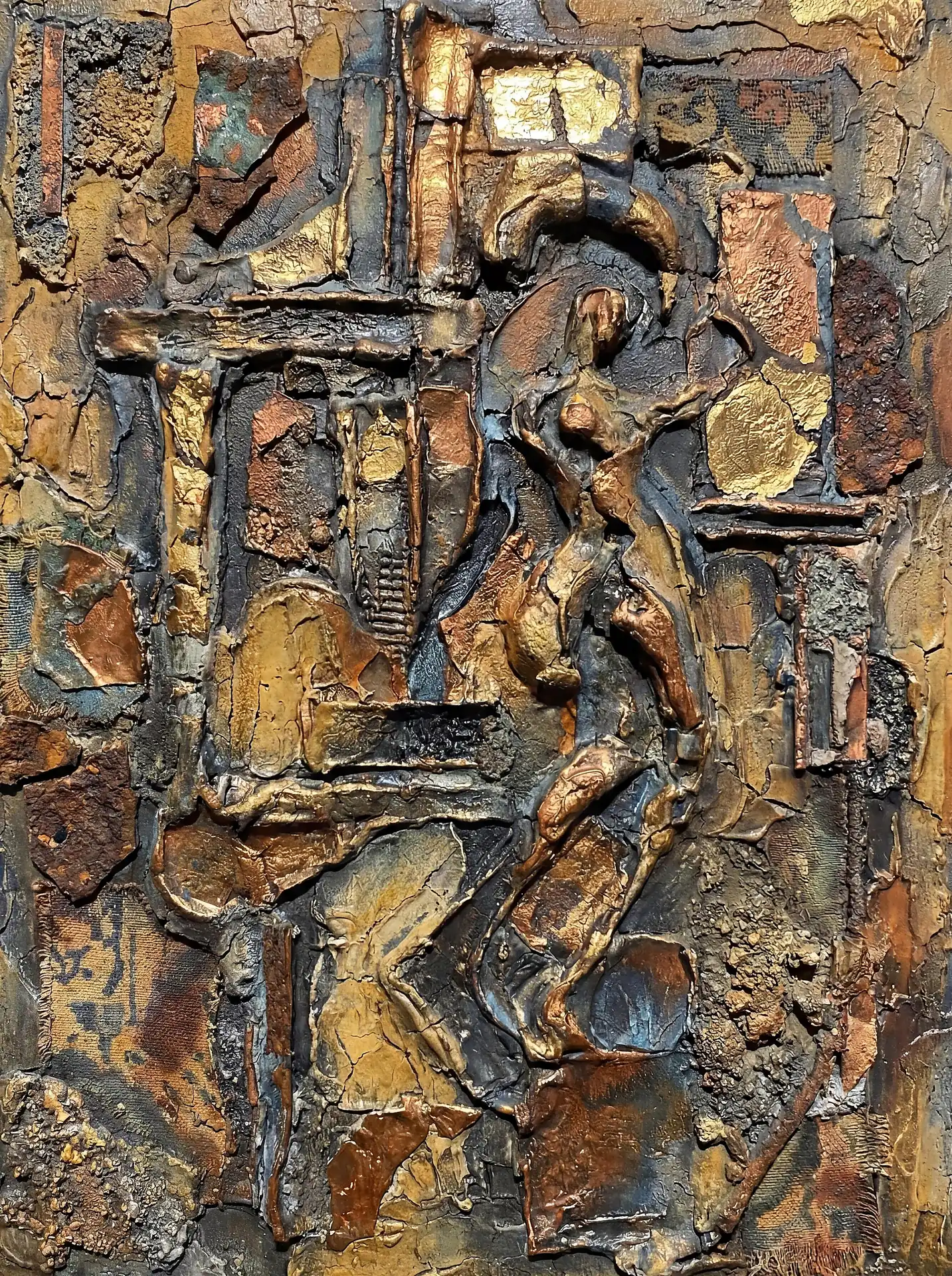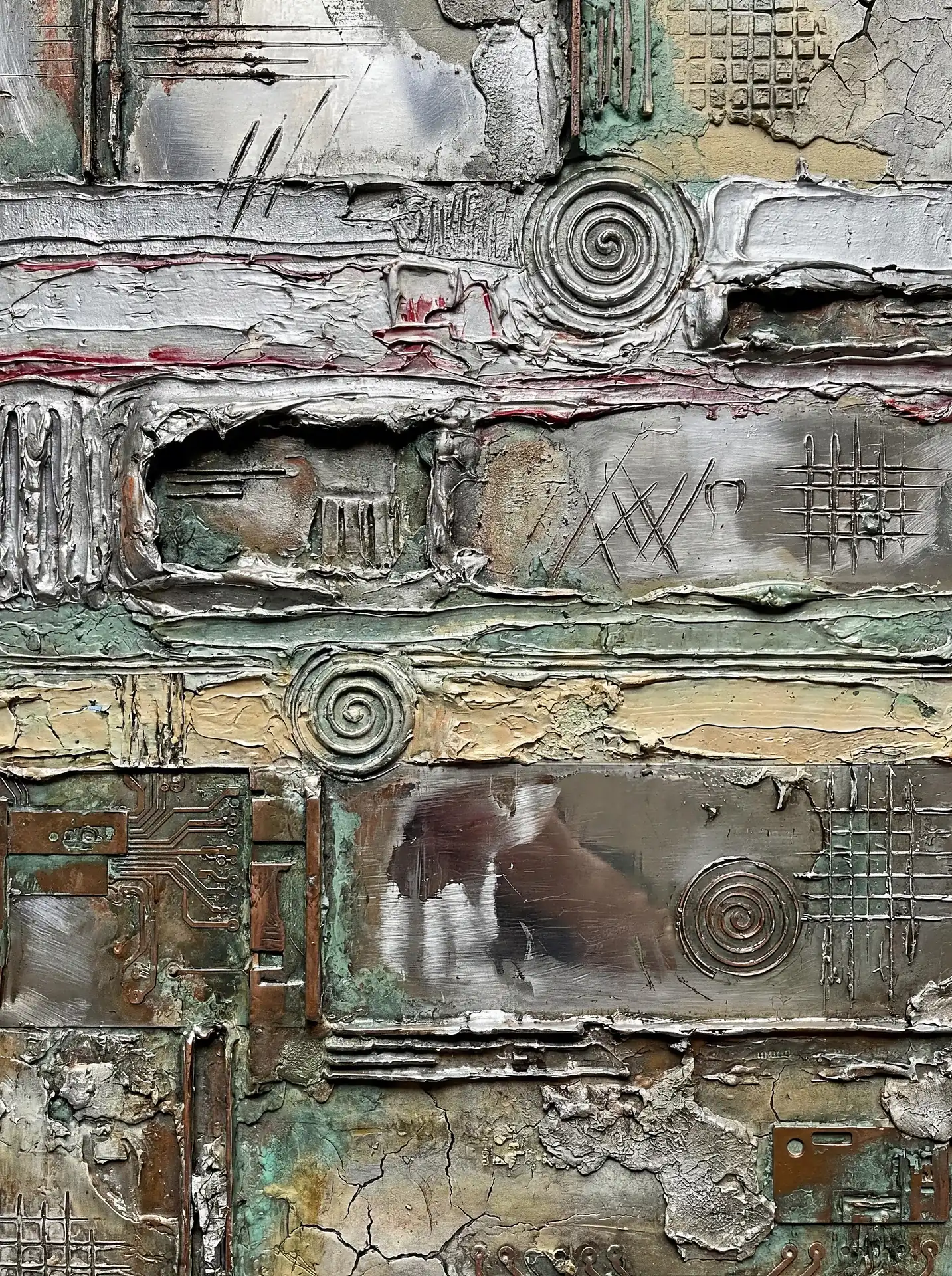 173 Magnificent Industrial Relief Artworks refuse to stay flat. These pieces push outward from their surfaces, building dimension through layered forms that cast real shadows across their own topographies. The work occupies contested territory between painting and sculpture, creating objects that exist in actual physical space rather than merely depicting imaginary space on canvas. Every piece demands to be walked around, examined from angles, experienced as a three-dimensional presence.