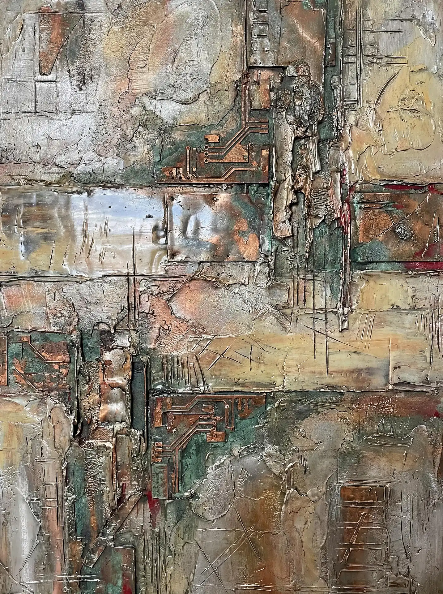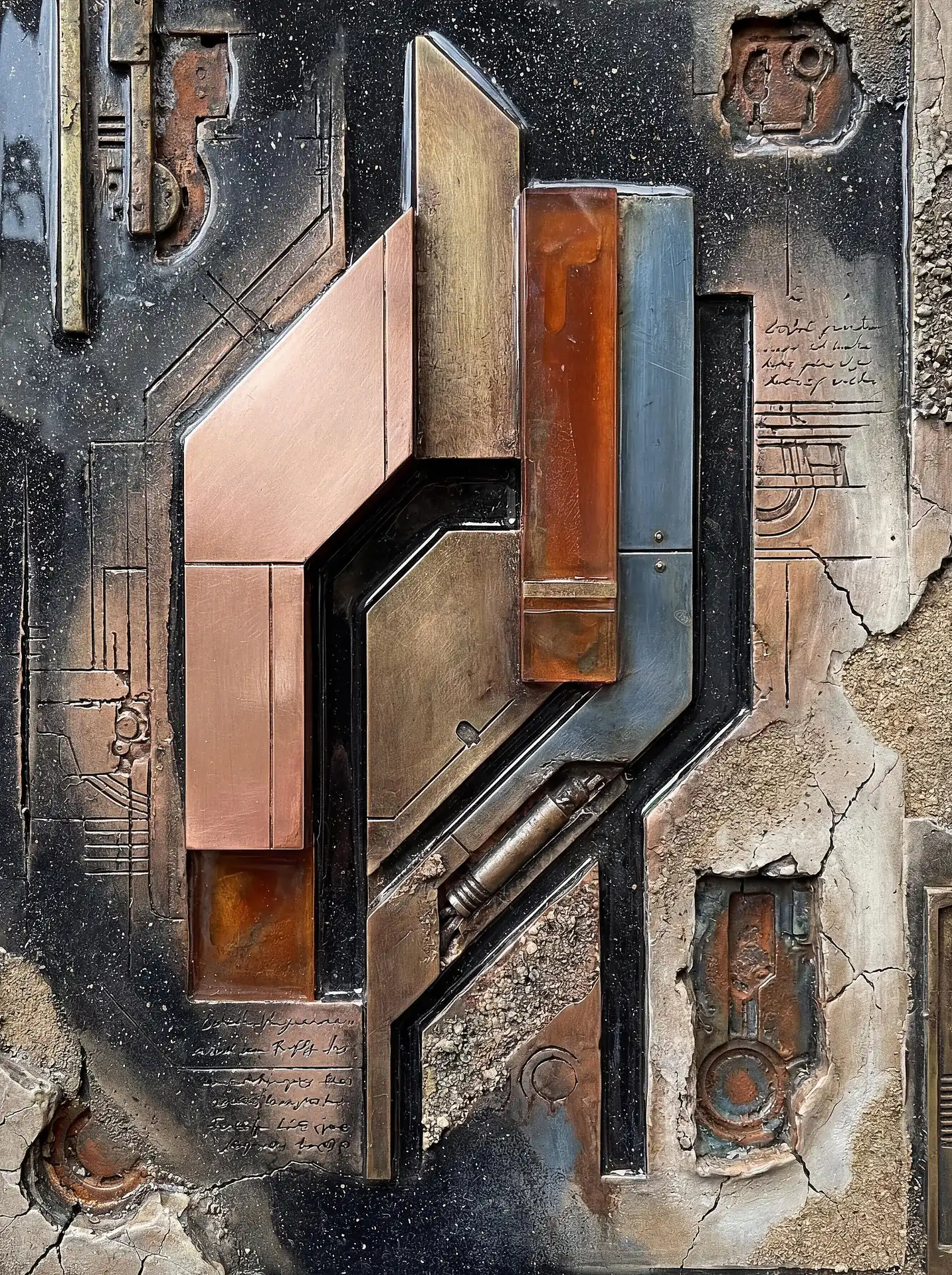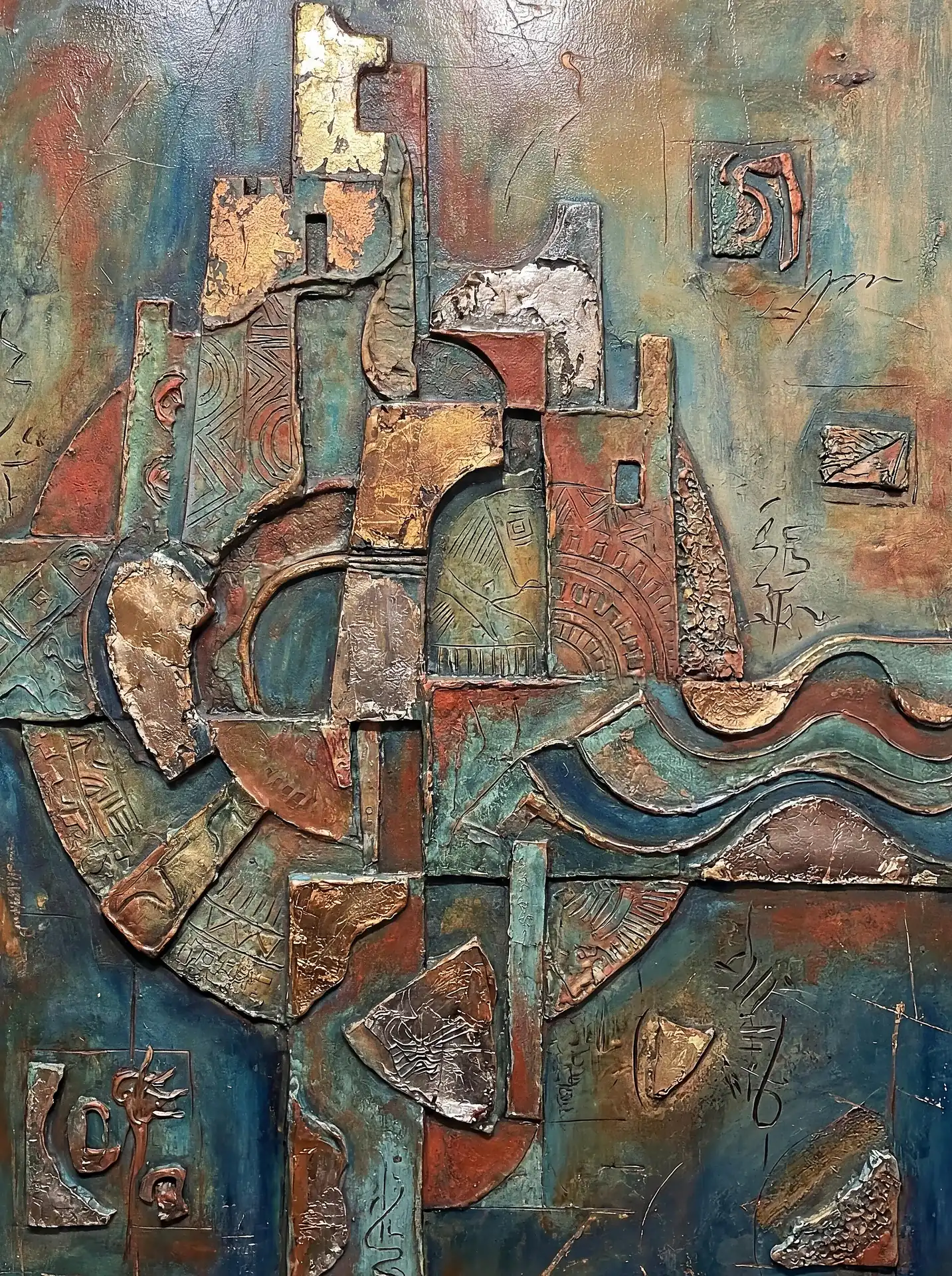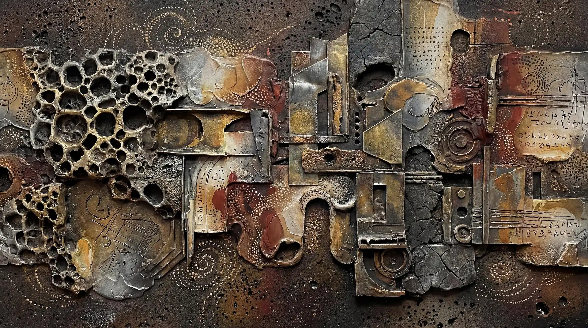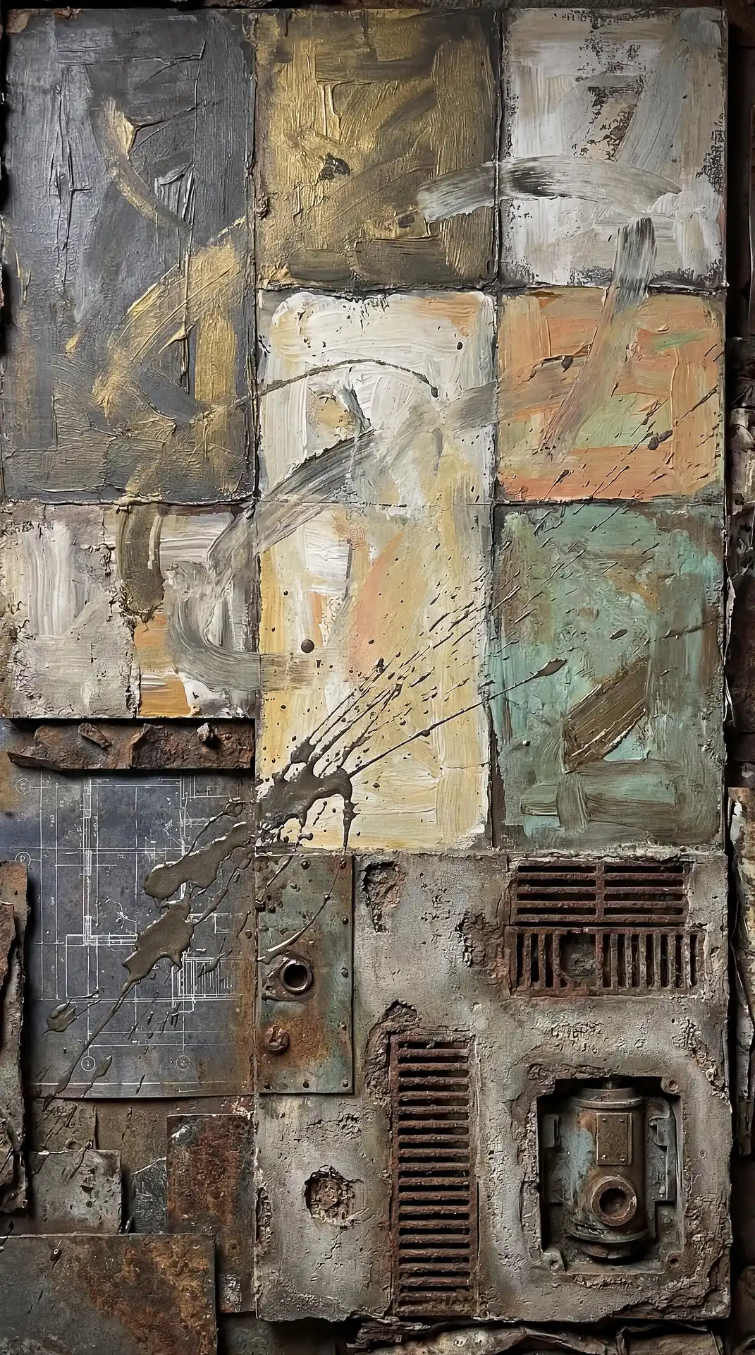 173 Magnificent Industrial Relief Artworks refuse to stay flat. These pieces push outward from their surfaces, building dimension through layered forms that cast real shadows across their own topographies. The work occupies contested territory between painting and sculpture, creating objects that exist in actual physical space rather than merely depicting imaginary space on canvas. Every piece demands to be walked around, examined from angles, experienced as a three-dimensional presence.