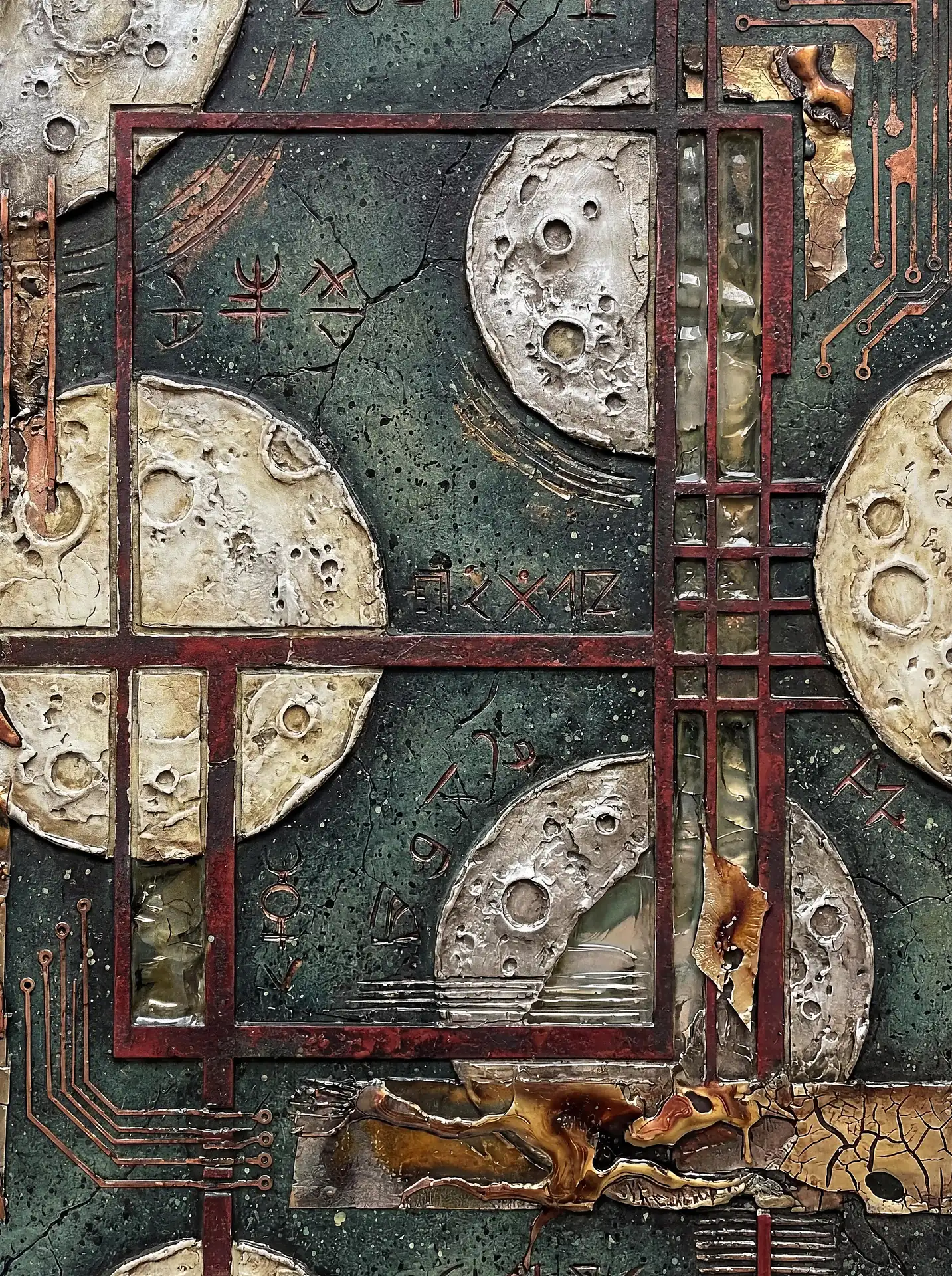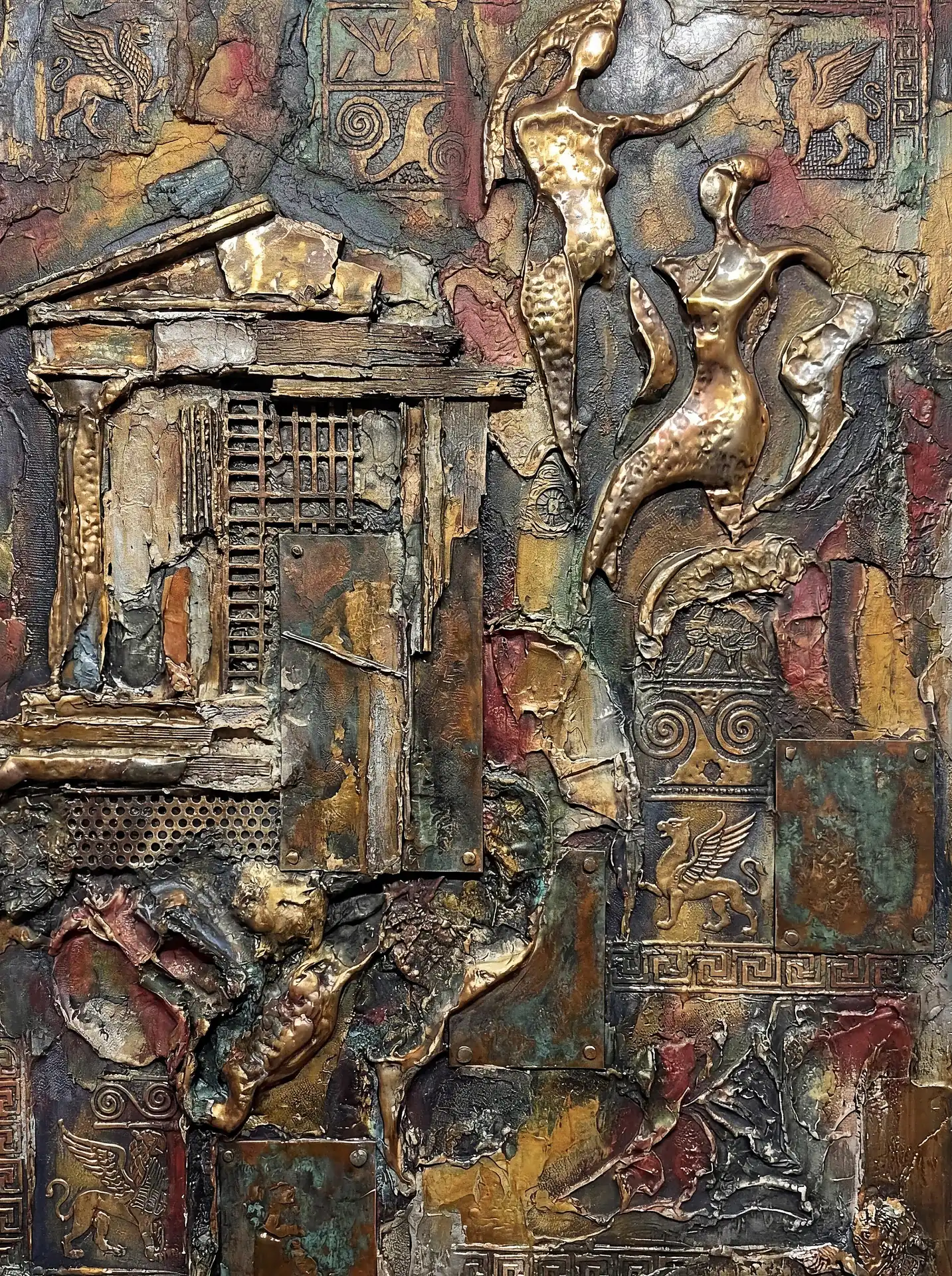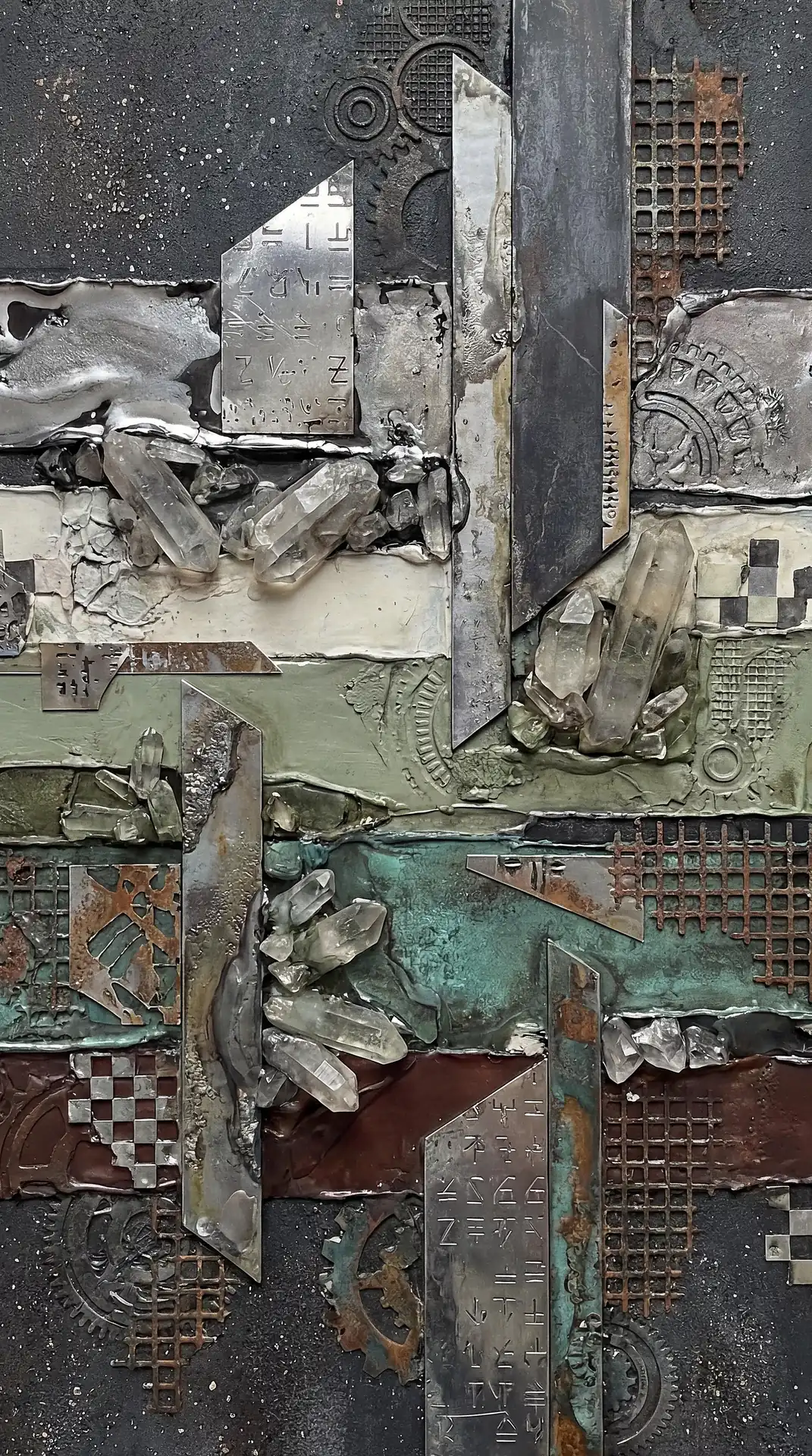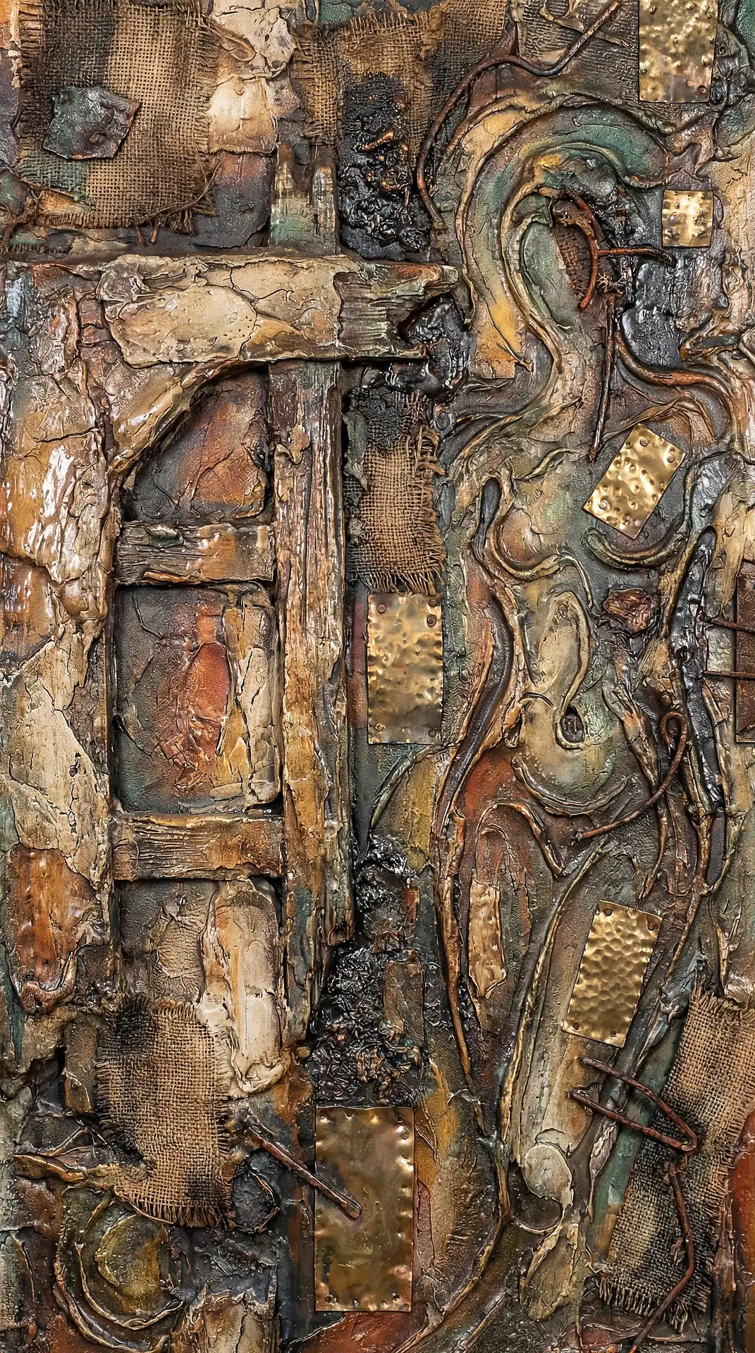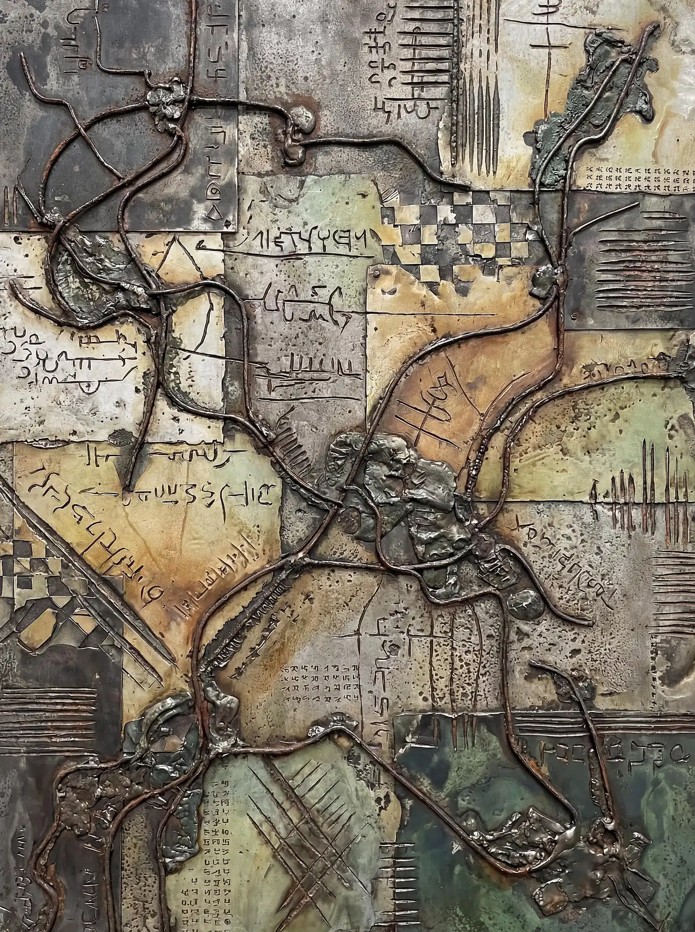 173 Magnificent Industrial Relief Artworks refuse to stay flat. These pieces push outward from their surfaces, building dimension through layered forms that cast real shadows across their own topographies. The work occupies contested territory between painting and sculpture, creating objects that exist in actual physical space rather than merely depicting imaginary space on canvas. Every piece demands to be walked around, examined from angles, experienced as a three-dimensional presence.