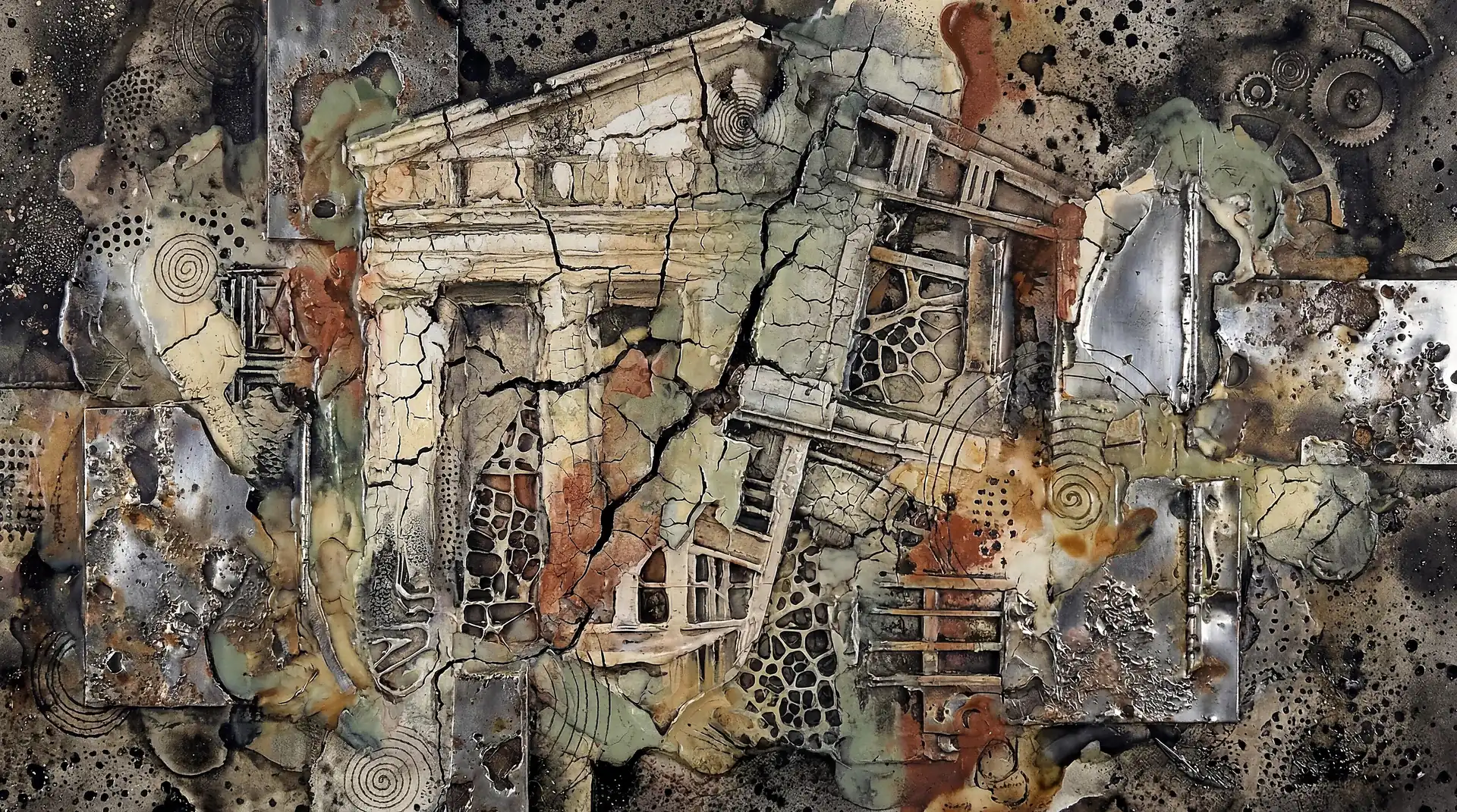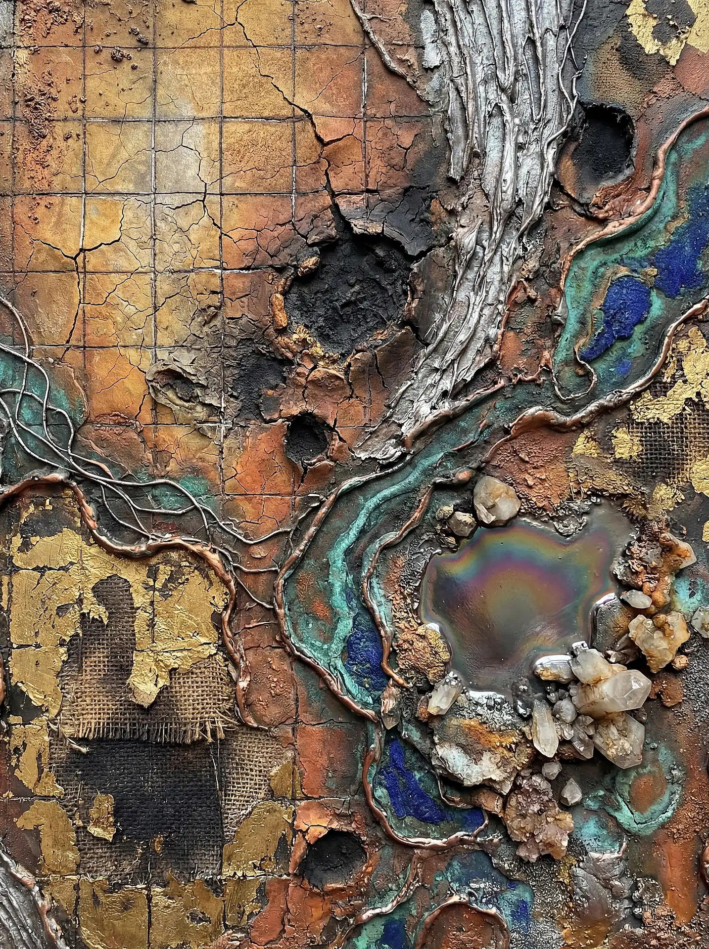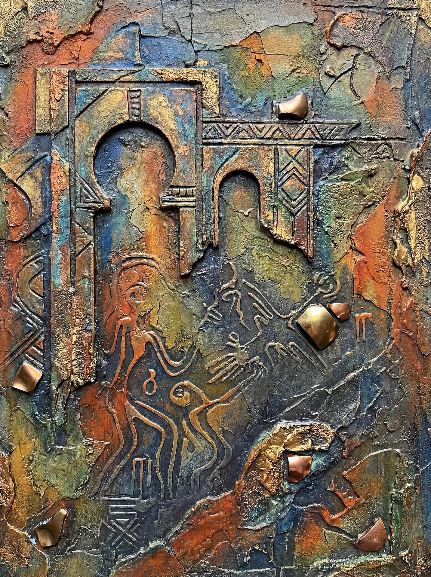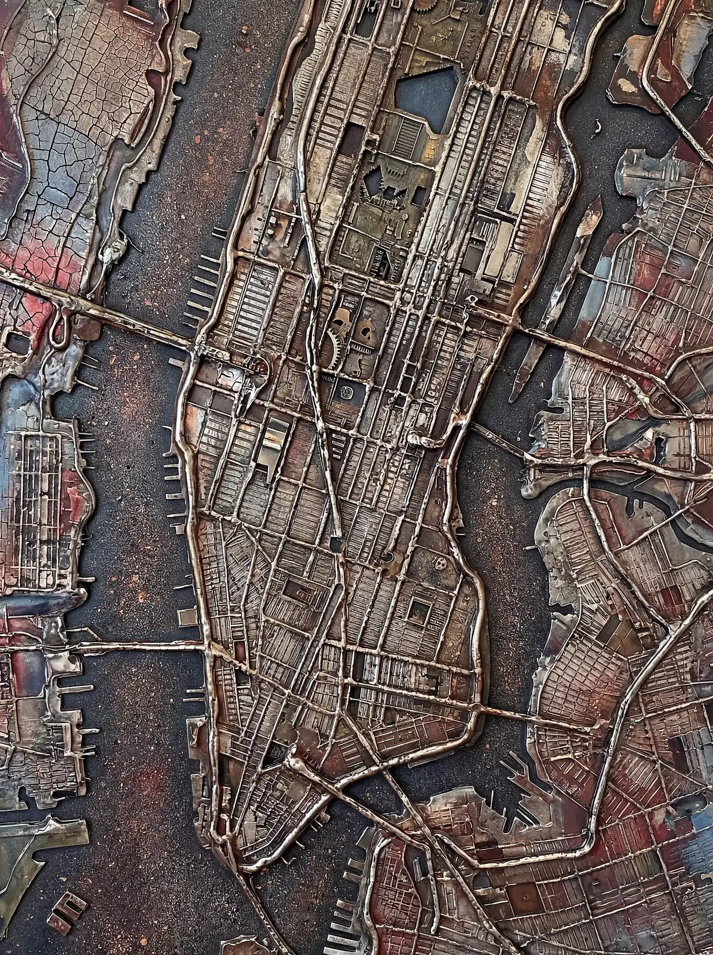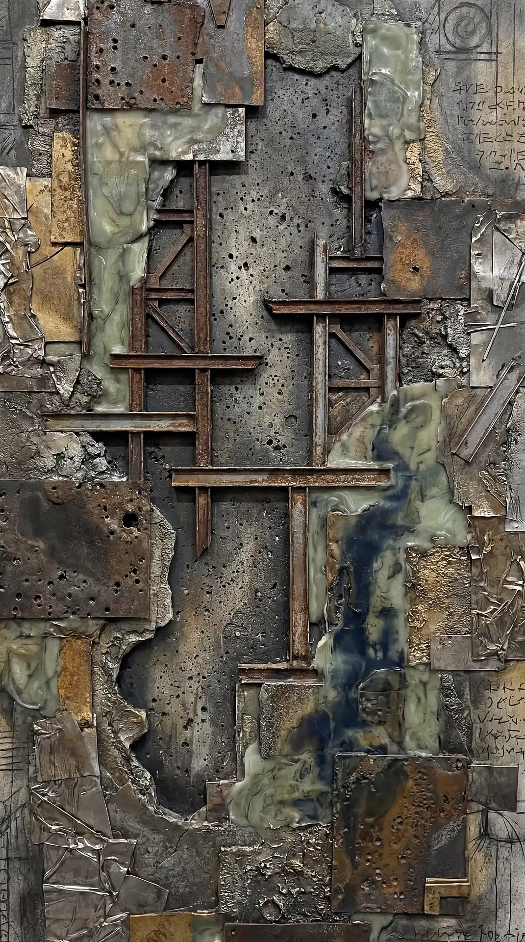 173 Magnificent Industrial Relief Artworks refuse to stay flat. These pieces push outward from their surfaces, building dimension through layered forms that cast real shadows across their own topographies. The work occupies contested territory between painting and sculpture, creating objects that exist in actual physical space rather than merely depicting imaginary space on canvas. Every piece demands to be walked around, examined from angles, experienced as a three-dimensional presence.