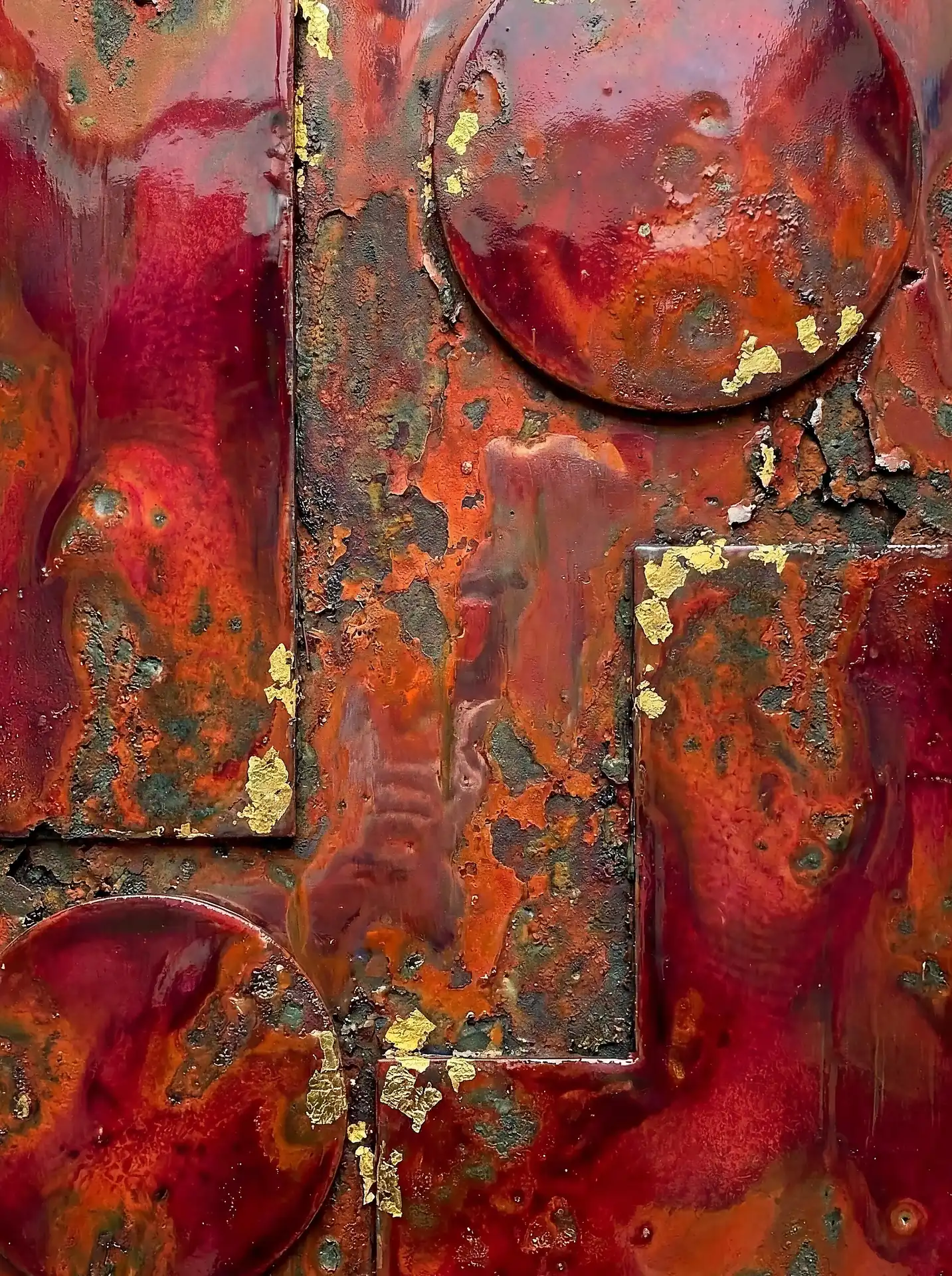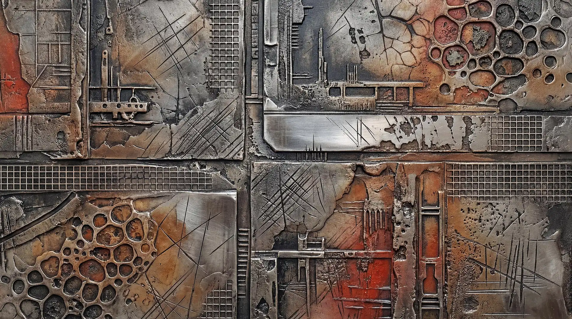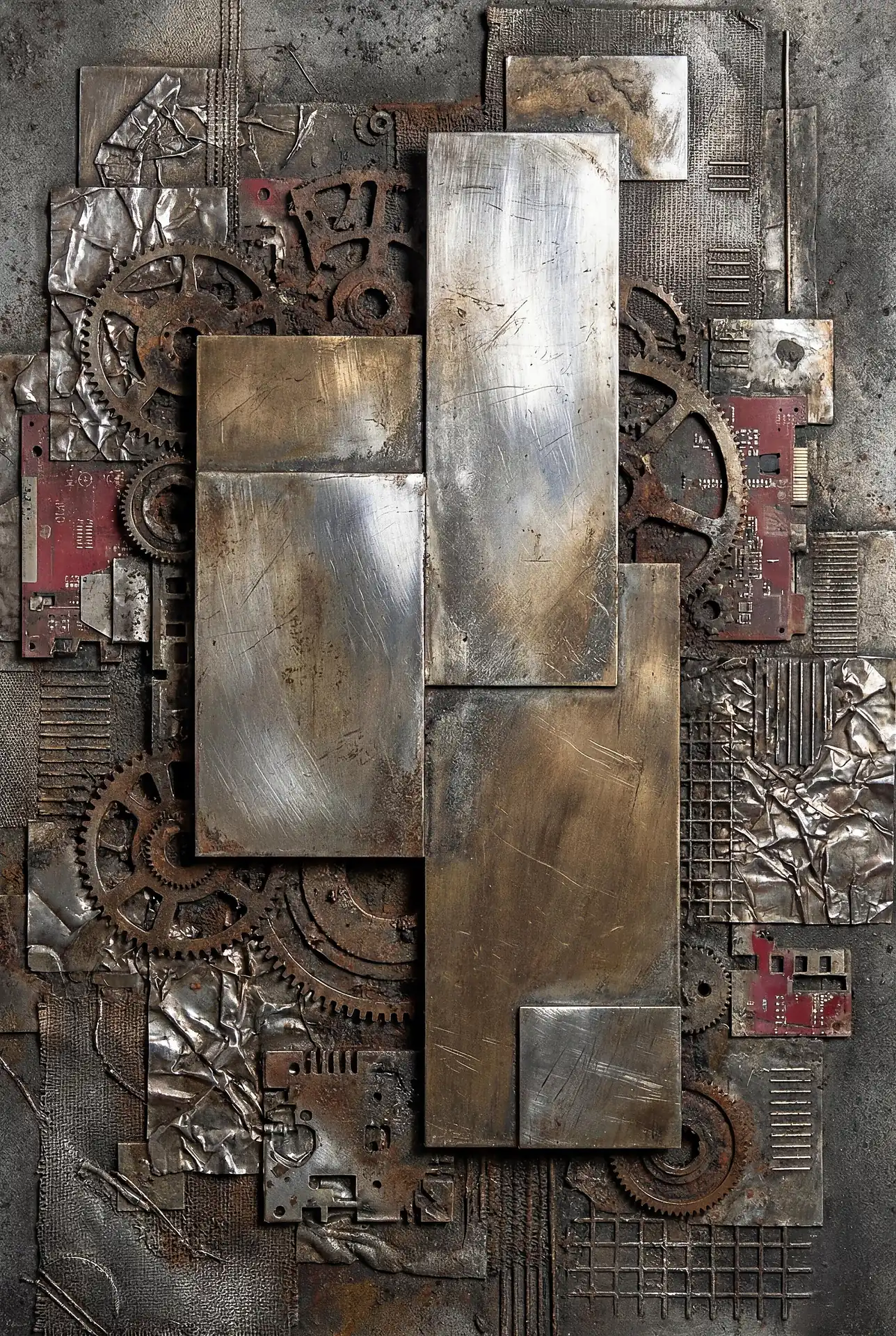 Every square inch of these 173 Magnificent Industrial Relief Artworks carries intense surface incident demanding attention. Smooth polished areas suddenly give way to rough corroded patches. Sections that gleam with apparent recent finishing neighbor deeply pitted zones suggesting centuries of exposure. The eye can almost physically feel what exploring fingers would discover—the cool of metal, the grit of crystalline corrosion, the sharp edges where fabricated plates meet and overlap. The work powerfully activates tactile imagination, making viewers newly conscious of their hands and their frustrated desire to reach out and touch. This texture operates simultaneously at multiple scales demanding different viewing distances. Large sculptural forms create overall compositional rhythm visible from across the room. Medium-scale details add complexity rewarding approach to arm’s length. Fine textures—individual brush marks, granular mineral deposits, hairline stress cracks—reveal themselves only to close examination from inches away. The pieces contain far more visual information than any single viewing from any single distance can possibly absorb, guaranteeing fresh discoveries on return visits.